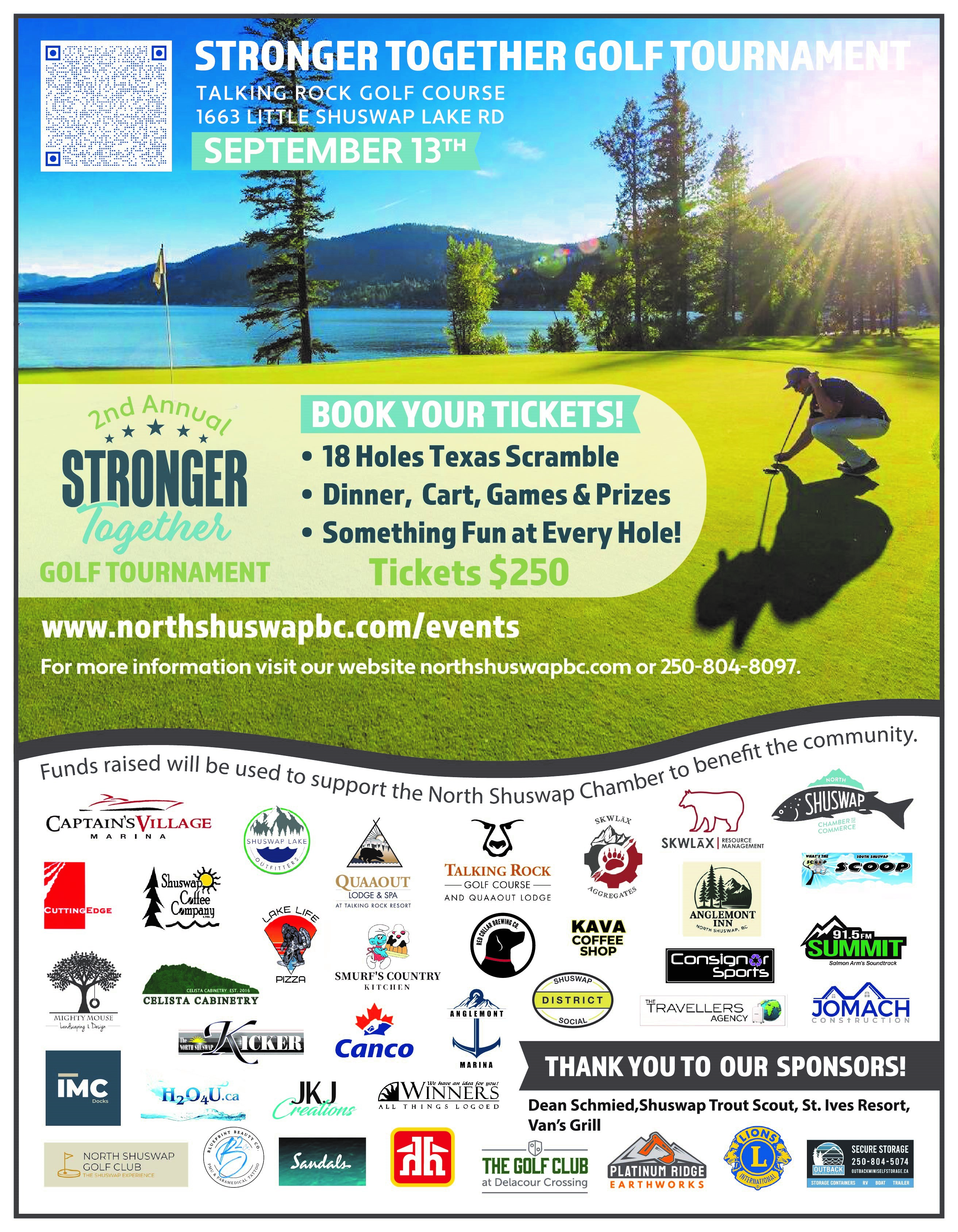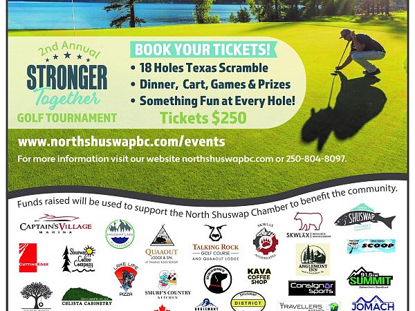 Includes Golf, Cart, Dinner, Games & Prizes and lots of fun! Funds raised will be used to support North Shuswap Chamber to benefit the North Shuswap Community .